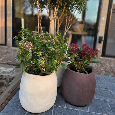 Bij Tuincenter Roegiers vindt u een breed aanbod potterie. Vandaag zijn vooral duurzame potten trendy. Leg onderaan in de pot een laag hydrokorrels om een goeie drainage te verkrijgen. Daar bovenop komt een luchtige bemestte potgrond.